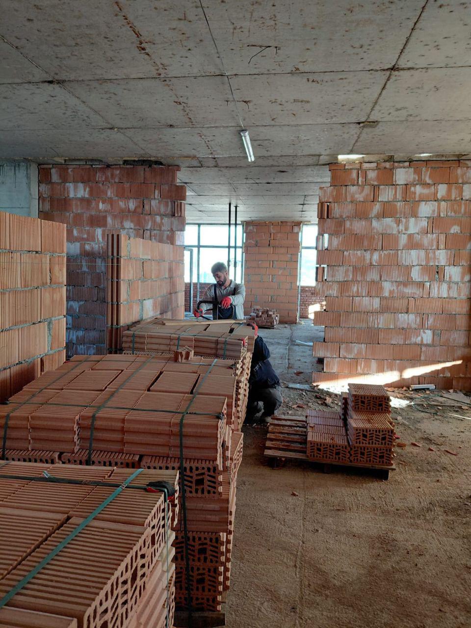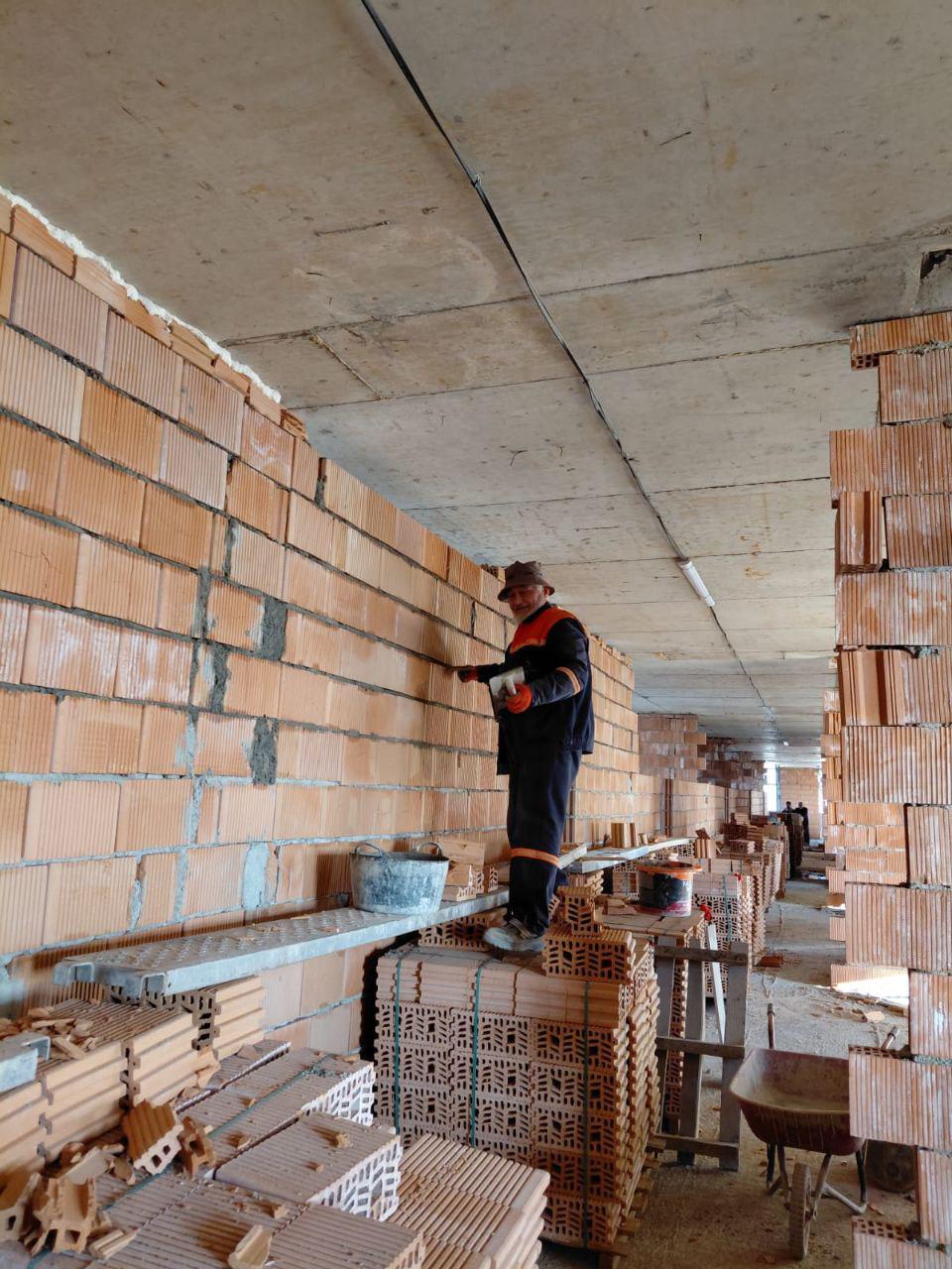 3) ბ ბლოკში დასასრულს უახლოვდება ბინებს შორის ტიხრების მოწყობა; კორიდორების შებათქაშება ;