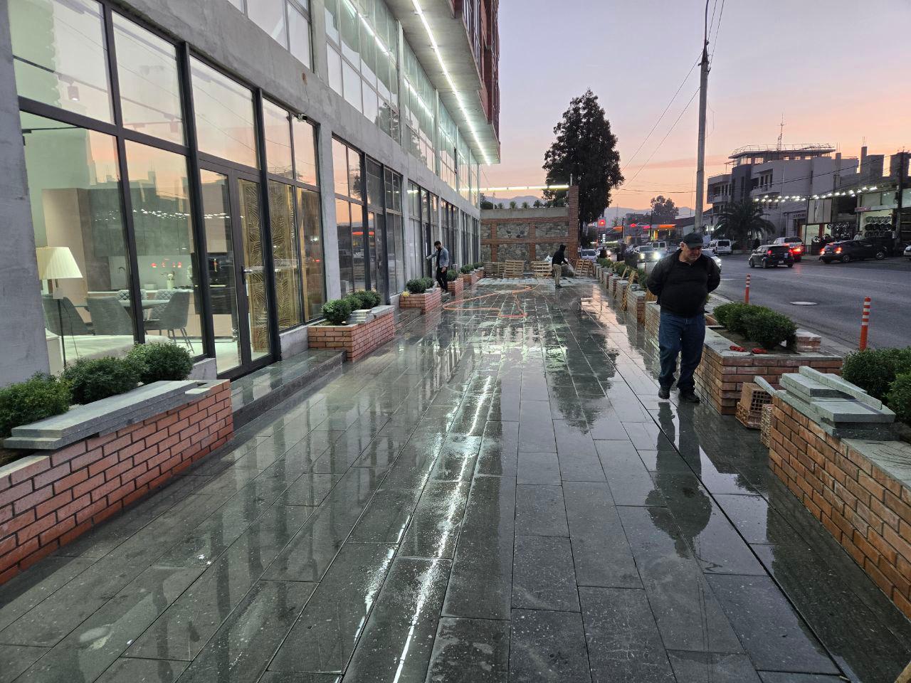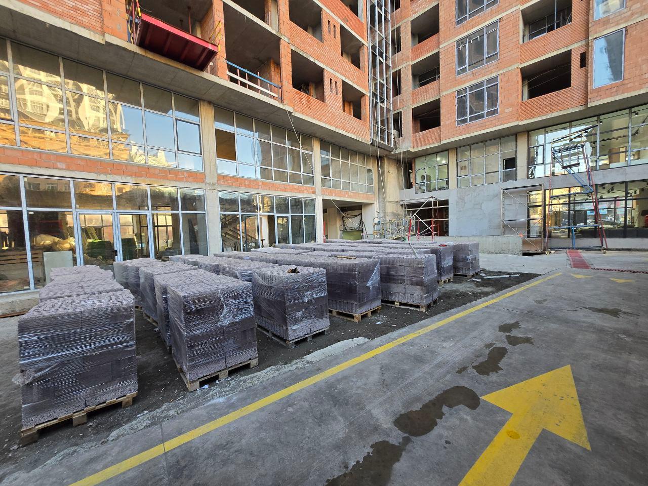 1) შეპირებისამებრ, გარე ფასადზე, კომპლექსის ეზოში, სადარბაზოებსა და ლიფტის უჯრედებზე მიმდინარეობს ბუნებრივი ქვით: “დიორიტით“ მოწყობა/მოპირკეთება, რაც კომპლექს უფრო მეტად ანიჭებს ბუნებრის იერსახეს;