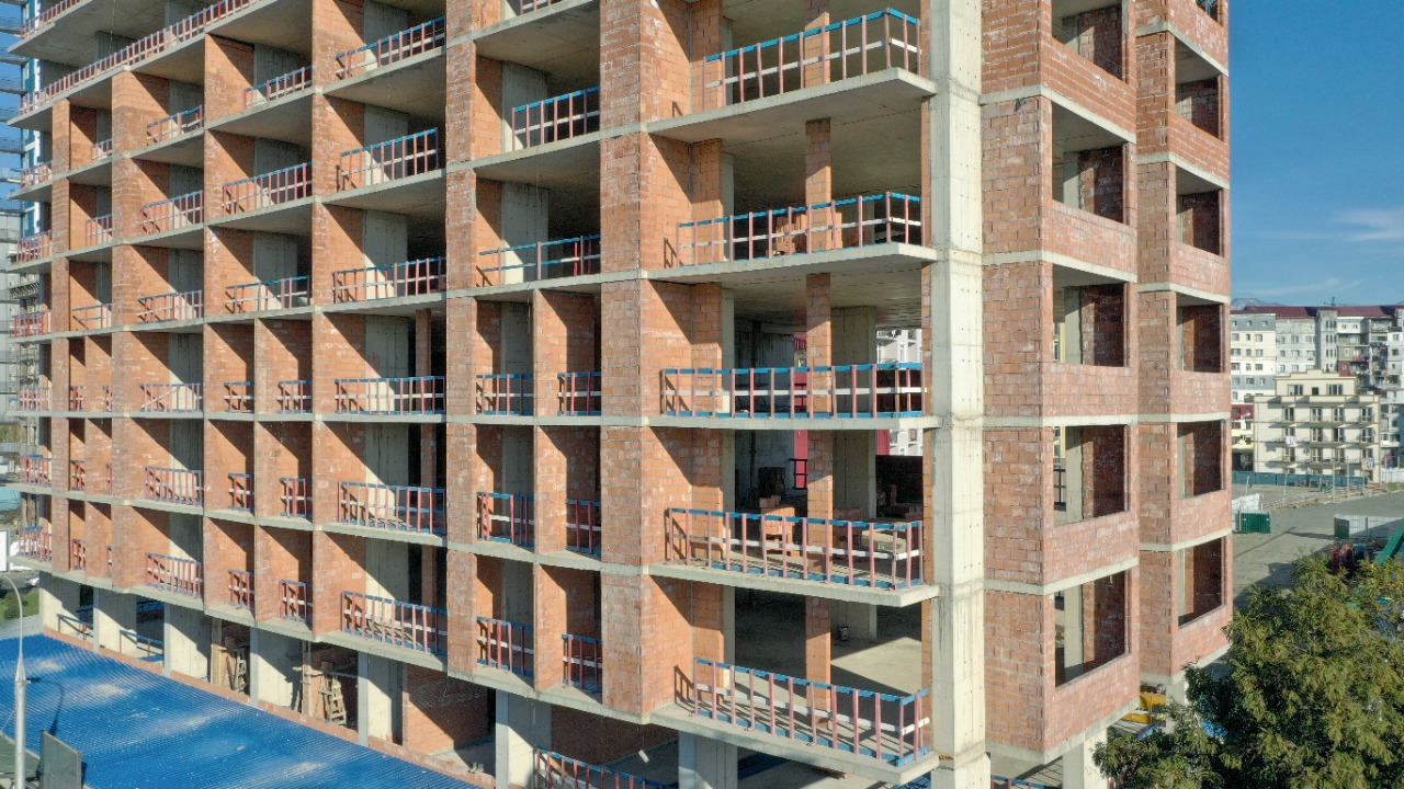 კომპლექს „გალილეო ბათუმი“–ს სიმაღლეში მშენებლობის პარალელურად აქტიურად მიმდინარეობს სართულებზე აგურით მშენებლობა.