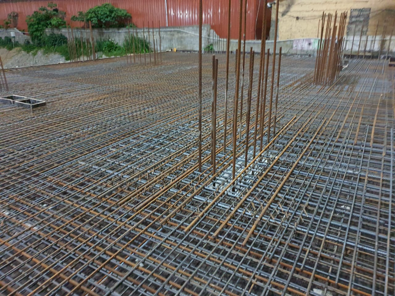 მიმდინარე სამუშაო პროცესი(ძირითადი მზიდი კონსტრუქციული სისტემების მოწყობა)