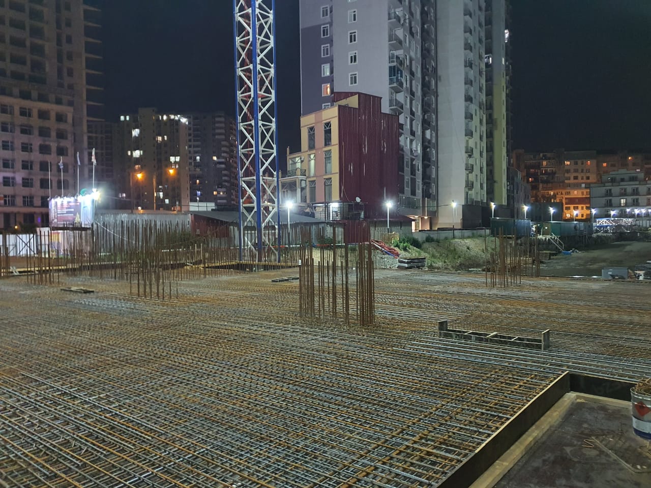 სამუშაო პროცესი აქტიურად მიმდინარეობს უწყვეტ რეჟიმში,ამ ეტაპზე ძირითადი მზიდი კონსტრუქციული სისტემები მოწყობილია +0,00 ნიშნულამდე.