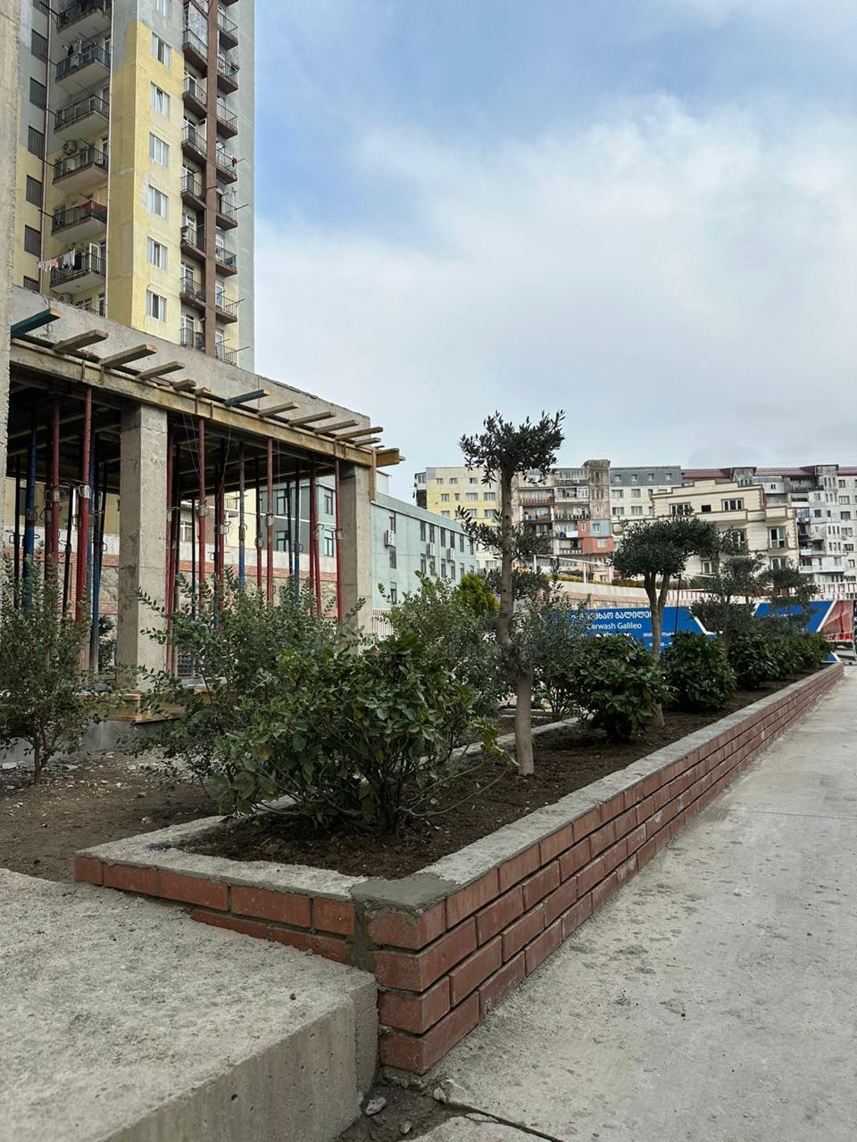 აქტიურ რეჟიმში გრძელდება  ეზოს მოწყობითი სამუშაოები, სადაც ეგზოტიკური მცენარეების არსებობა ალამაზებს და ამავდროულად ქმნის ჯანსაღ სივრცეს.