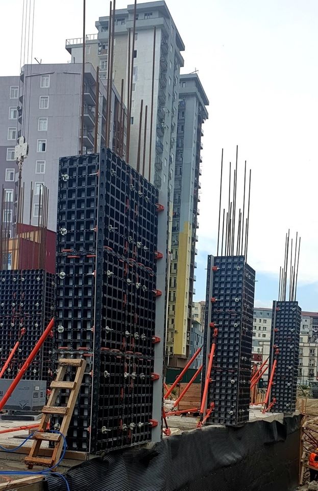 აქტიურად მიმდინარეობს მშენებლობის პროცესი გერმანული ფირმის PERI ის საყალიბე სისტემა DUO ს გამოყენებით.
